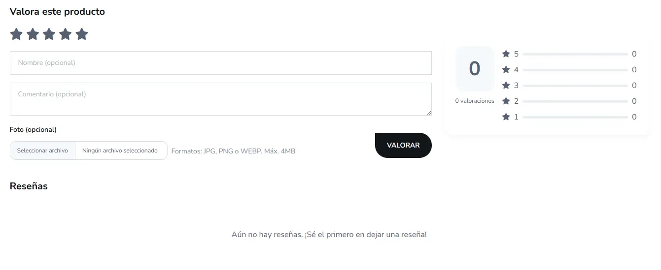 Las valoraciones aparecerán de forma visible en cada producto, lo que ayudará a otros compradores a tomar decisiones de compra más informadas.